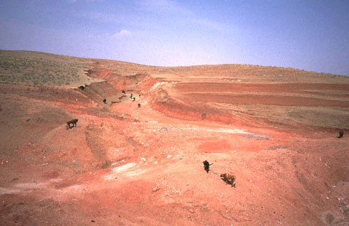 Now and then there were great cracks in the red, red earth. Patches of grass grew here and there. The occasional road sign indicated forestry plantations and young trees ran along either side of the road. (from "Against the Wind" - Poolbeg Press)