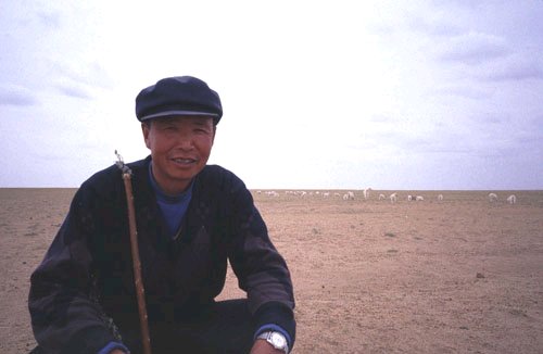 Later I noticed what looked like a town up ahead. I asked a shepherd whether this was Sonid Youqi and he said that yes, it was just over there. Coasting along, it took ages, even though the town had seemed so close initially. In fact I covered about twenty kilometres before I arrived. This must have been an illusion of sorts, created by the dry, crystal clear air and the extraordinarily good visibility. (from "Against the Wind" - Poolbeg Press)