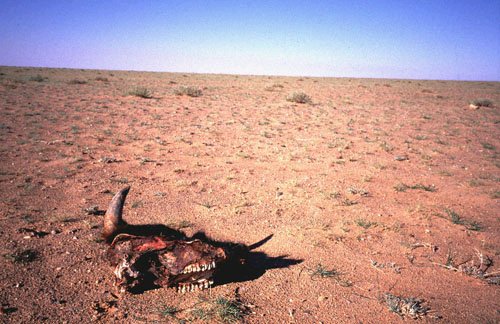 I spotted a white object. On closer inspection it looked like the skeleton of a cow. There were more, further on. This time the skeletal remains had skin still attached. They belonged to a horse. It seemed like the animal had sustained an injury and died there. The bones lying scattered all over the place were a reminder of what a harsh, unforgiving environment this was. In these temperatures, and with such low humidity, I would have to be extra careful too. This was no joke. (from "Against the Wind" - Poolbeg Press)