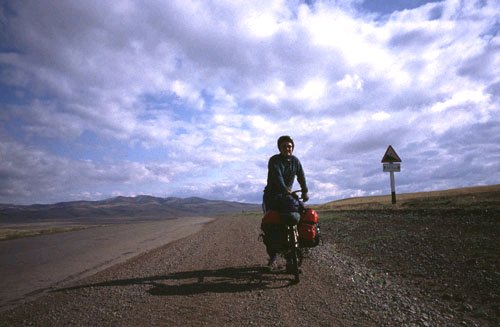 Emerging from the station, my feet and tyres were at last on a Russian road. It was asphalt, thank goodness! I looked forward to a long and happy relationship with the stuff. Travelling through the mountains on the border train, I had seen more and more green vegetation, but cycling along through the trees I was aware of what a real blessing the trees were. I could sense an increase in the oxygen in the air. It was relaxing on the eyes too. I felt my body easing smoothly into pedalling. Being invigorated like that reminded me of the essential part plants play in life. (from "Against the Wind" - Poolbeg Press)